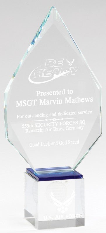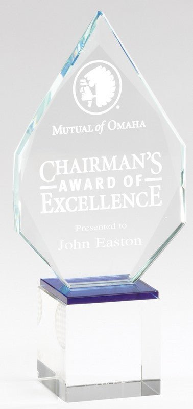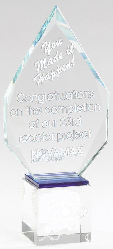 Elegant Arrowhead Crystal Award on Clear Crystal Base. Laserable. Packed in Velour Lined Presentation Box