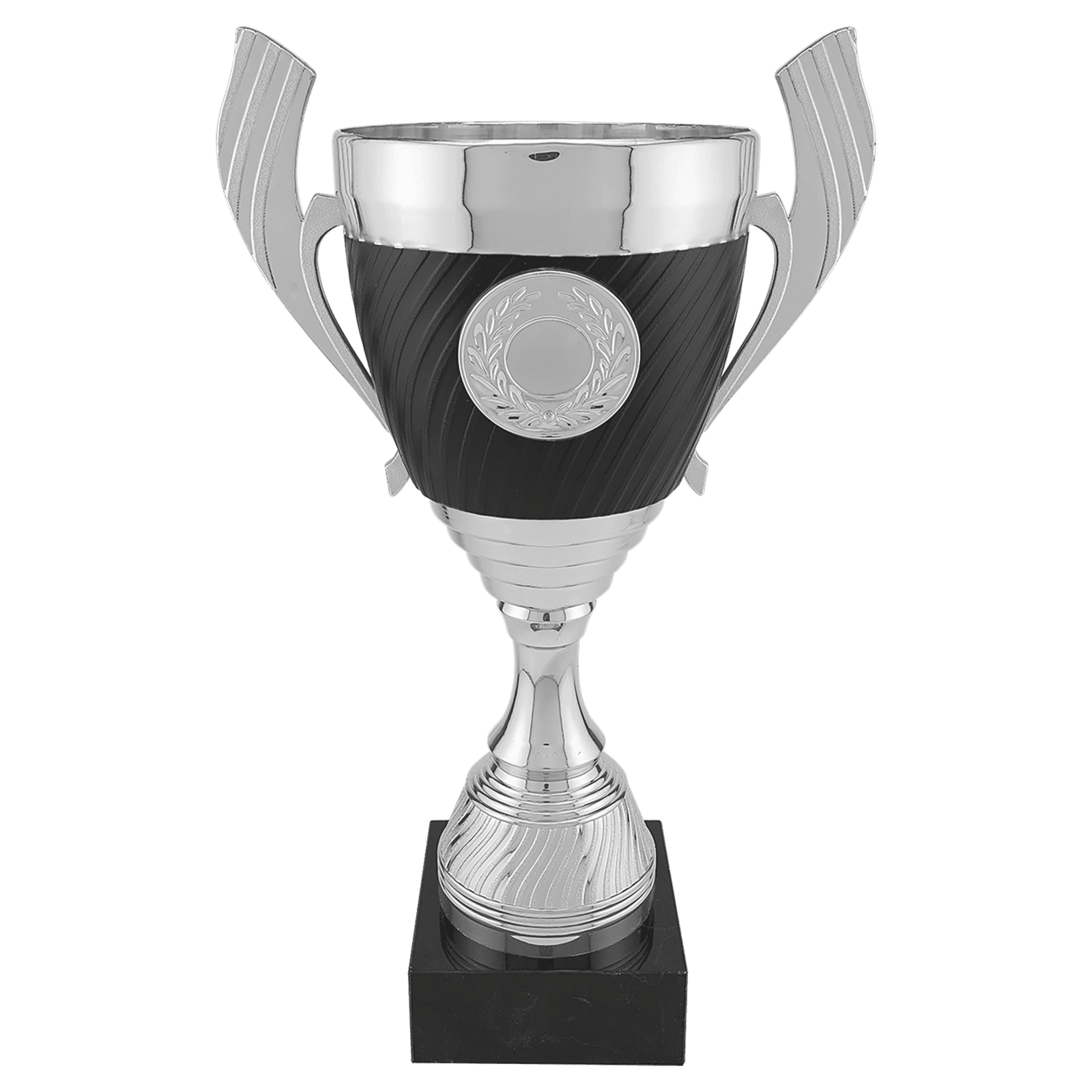 14 1/4″ Silver with Black Completed Plastic Cup Trophy with Black Marble Base