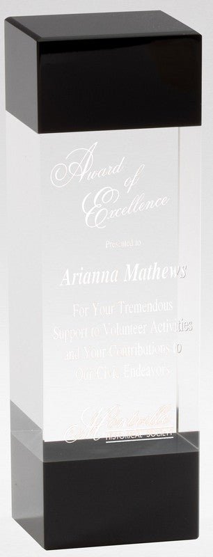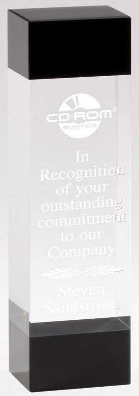 Elegant Clear and Black Crystal Award. Laserable. Packed in Velour Lined Presentation Box