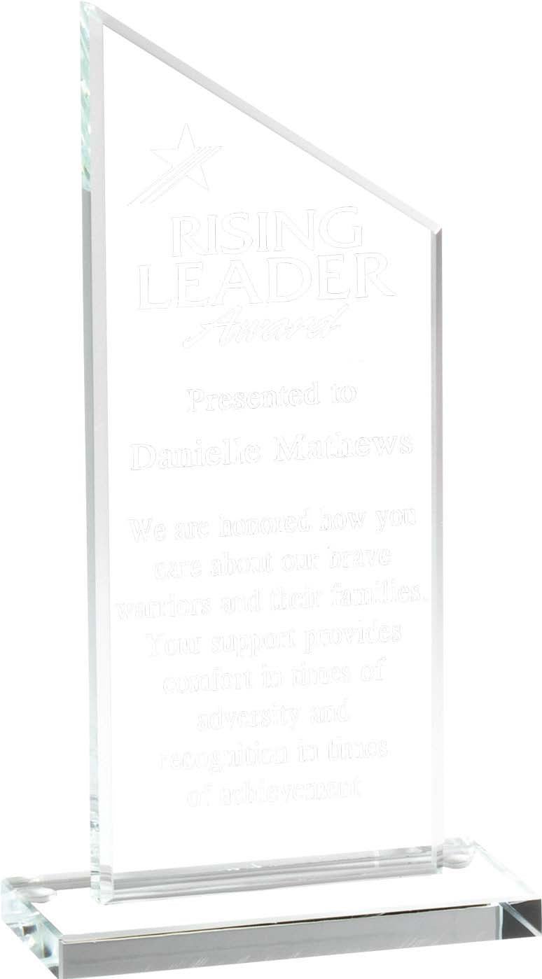 Clear Glass award peak , 1/2″ thick on base including presentation box and laserable