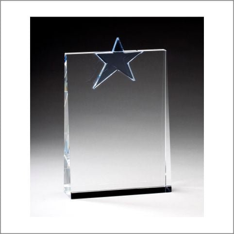 An Elegant Sapphire Star With Clear Crystal Award And Matching Clear Crystal Base, Fully Laser And Rotary Engravable Including Deluxe Velour Lined Presentation Box