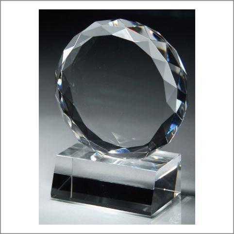 A Faceted Crystal Circle On Crystal Base. Laserable With Deluxe Velour Lined Presentation Box