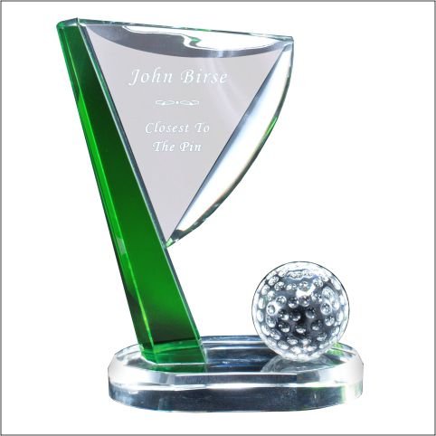 A Green And Clear Crystal Award With Fully Dimpled Golf Ball. Laserable With Presentation Box