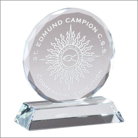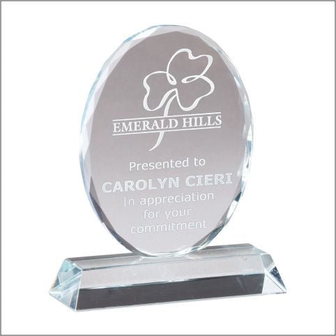 A Clear Crystal Award On Matching Clear Crystral Base, Fully Laserable . Includes Deluxe Velour Lined Presentation Box