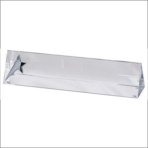 An Elegant Clear Crystal Name Plate With Silver Plated Star, Fully Laser And Rotary Engravable. Includes Deluxe Velour Lined Presentation Box