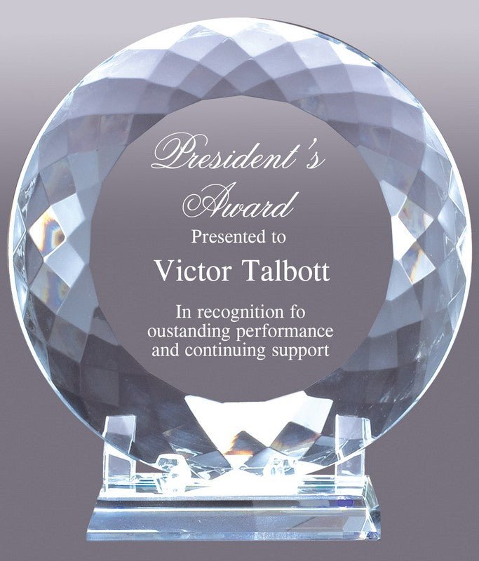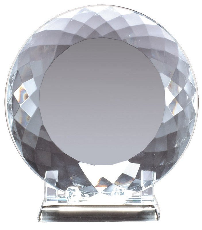 An Elegant Two Piece Crystal Plate And Matching Clear Crystal Base With Diamond Faceted Edges Around Edge Of Plate. Includes A Deluxe Velour Lined Presentation Box