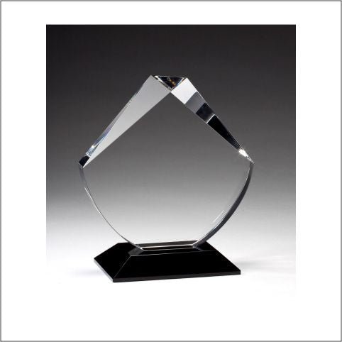 An Elegant Faceted Clear Crystal Award On Black Base Including Deluxe Velour Lined Presentation Box