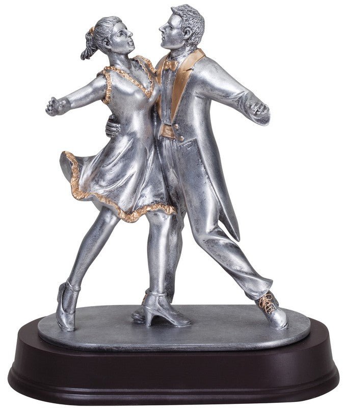 An Elegant Pewter And Gold Dance Couple Award On Dark Finish Base With Room For An Engraving Plate