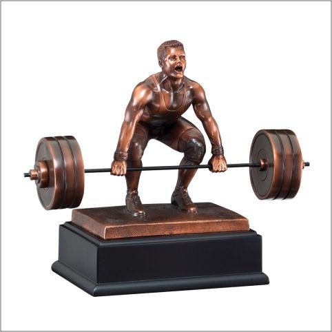An Elegant Sculpted Anqique Bronze Deadlife Weightlifter, Male On A Black Finish Base