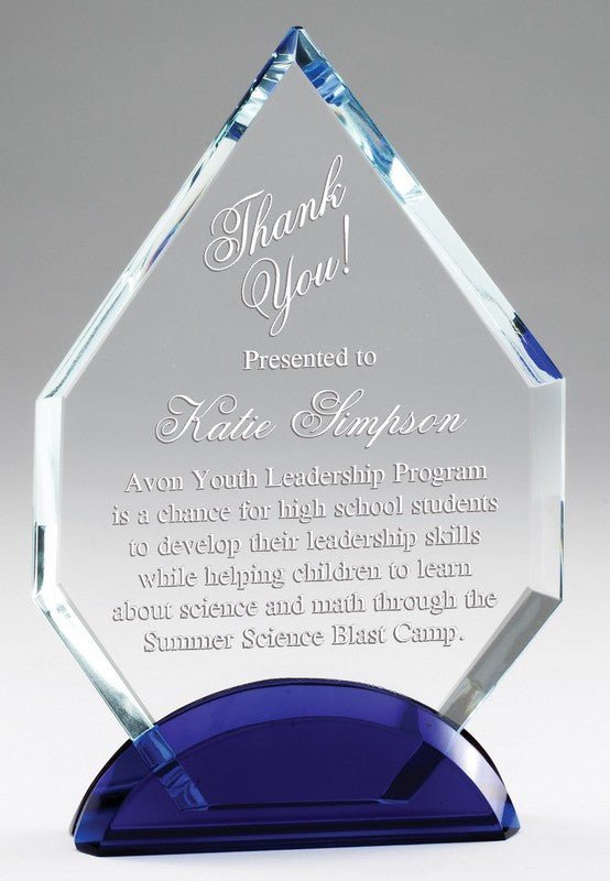 Elegant Arrowhead Crystal Award On Sapphire Blue Base Individually Boxed Laserable (Not Suitable For Sand Blasting) 4 Std Pack 4 1/4″ X 6 3/4″