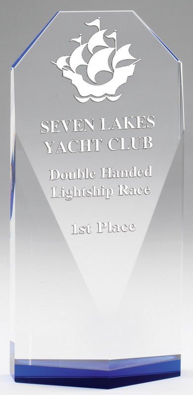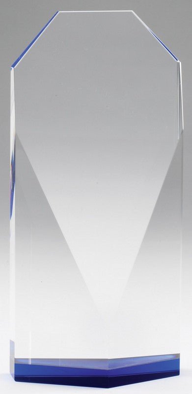 Elegant Diamond Front Crystal With Blue Reflective Bottom 1 3/4″ Thick Laserable 6 Std Pack Individually Boxed 7 3/4″ X 1 3/4″
