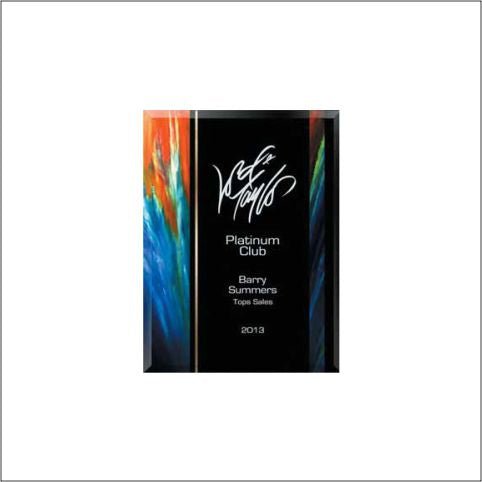 Elegant Glass Plaque Award full color with a rich full grained leatherette easel for hanging or standing.