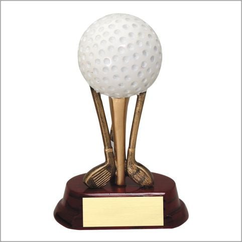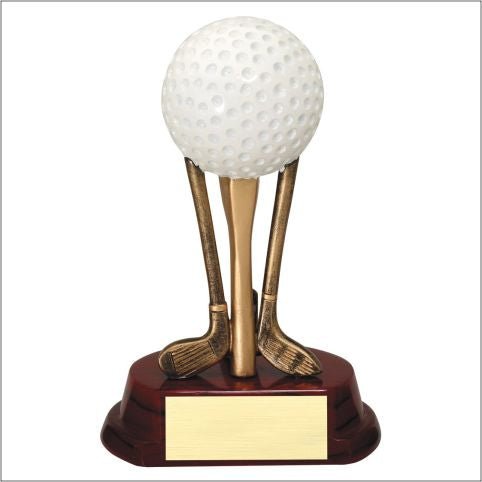 An White Golf Ball On Golf Finish Golf Clubs Mounted On Rosewood Finish Base