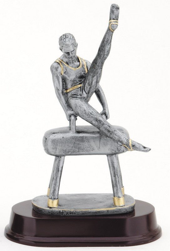 An Elegant Pewter And Gold Gymnastics, Male Sport Award On Dark Finish Base With Room For An Engraving Plate With Room For An Engraving Plate