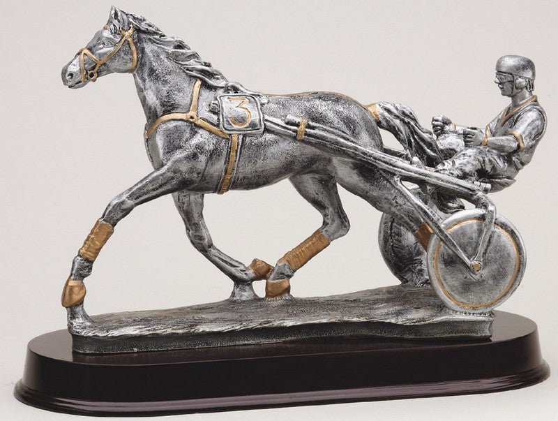 An Elegant Pewter And Gold Harness Racing Sulky Sport Award On Dark Finish Base With Room For An Engraving Plate