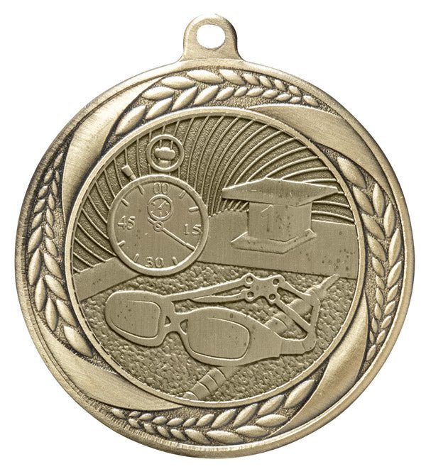 Laurel Swim Medals are a great way to recognize any award recipient. These medals come in Bronze, Gold and Silver options.