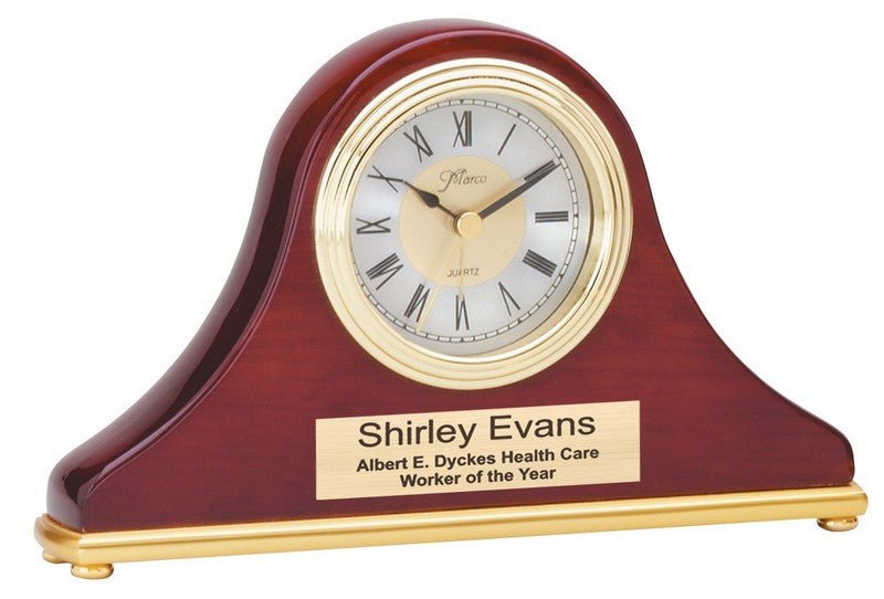 An Elegant Precision Rosewood Finish Quartz Clock With Brass Accents And Alarm, Individually Boxed.