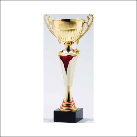 Elegant Gold And Red Finish Metal Cup On Genuine Black Marble Base