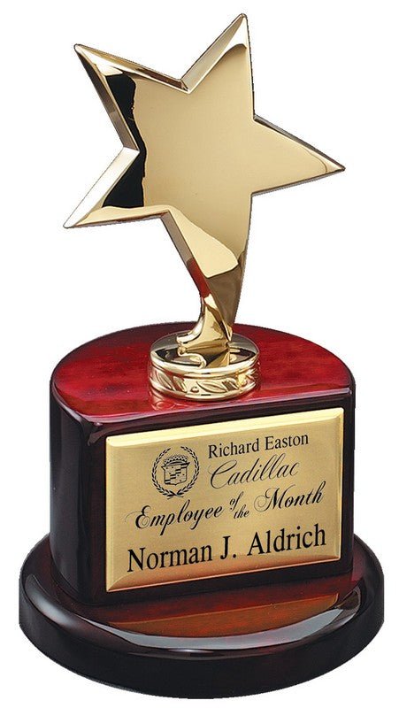 An Elegant Brass Plated Star Mounted On A Rosewood Piano Finish Base