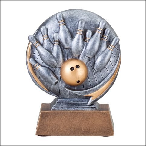 An Action 3-D Pewter And Gold Sport Scene With Bowling On Bronze Base With Room For An Engraving Plate