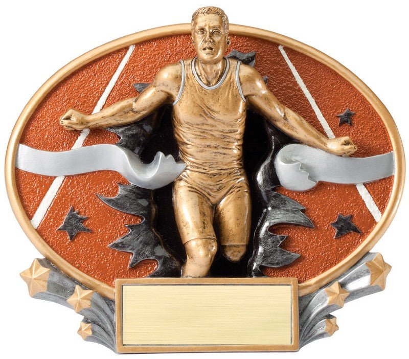 An Explosion Of Full Color Track, Male Action With Gold Border And Room For An Engraving Plate