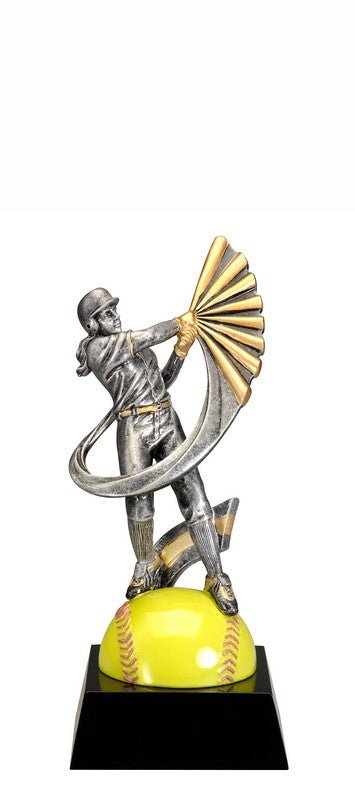 Action Swoosh Pewter And Gold Baseball, Male Figure With Full Color Sport Icon On Black Finish Base