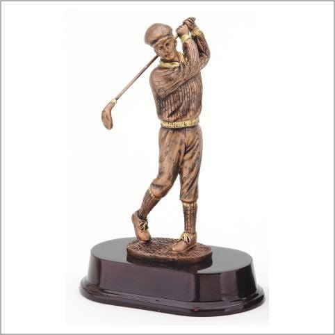 An Elegant “Old Fashioned” Bronze Finish Golfer, Male Mounted On Rosewood Finish Base