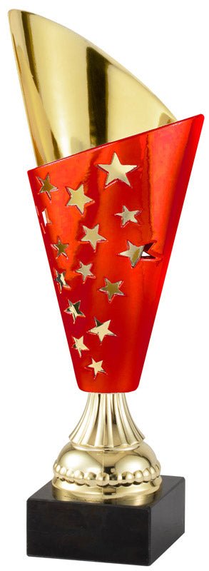 Red and Gold Star Plastic Cup with Genuine Black Marble Base. Includes Box.