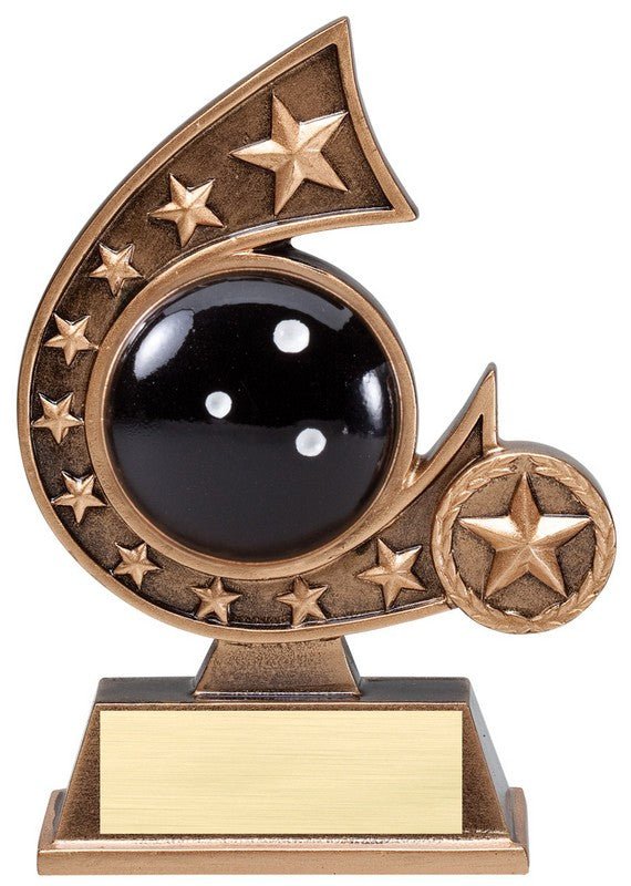 Action Star Bronze And Gold With Full Color, Comet Bowling Scene Award With Room For An Engraving Plate