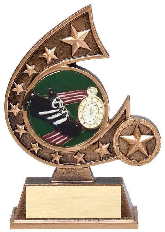Action Star Bronze And Gold With Full Color, Comet Track Scene Award With Room For An Engraving Plate