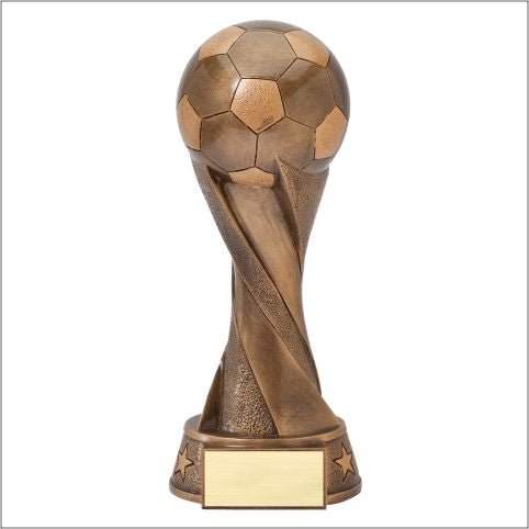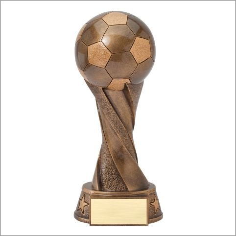 An Beautiful Bronze And Gold Finish Soccer Ball Award With Bronze Finish Base And Room For An Engraving Plate