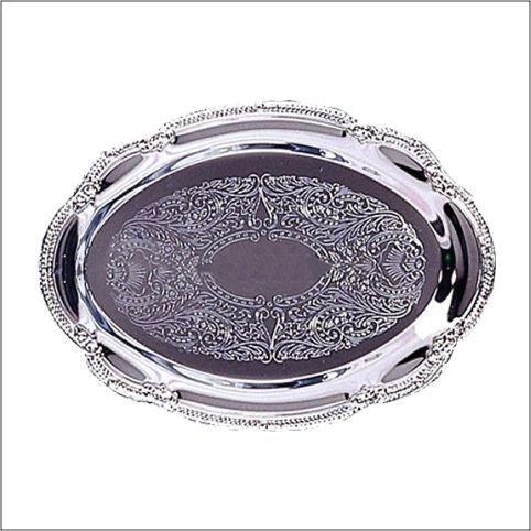 An Elegant Chrome Plated Round Tray With Braided Edge And Area To Engrave