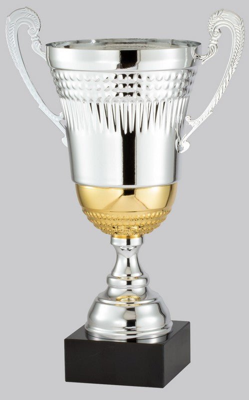 Elegant Silver and Gold Metal Cup on Genuine Black Marble Base. Packed in Presentation Box