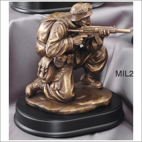Army Soldier Kneeling Witn Rifle Drawn On Black Finish Base