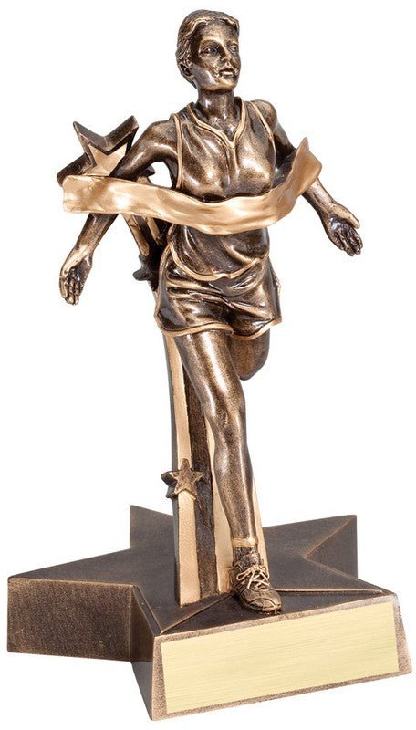 Action Super Star Bronze And Gold Finish Track, Female On Matching Swoosh Star Base With Room For An Engraving Plate