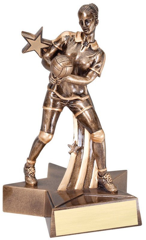Action Super Star Bronze And Gold Finish Volleyball, Female On Matching Swoosh Star Base With Room For An Engraving Plate
