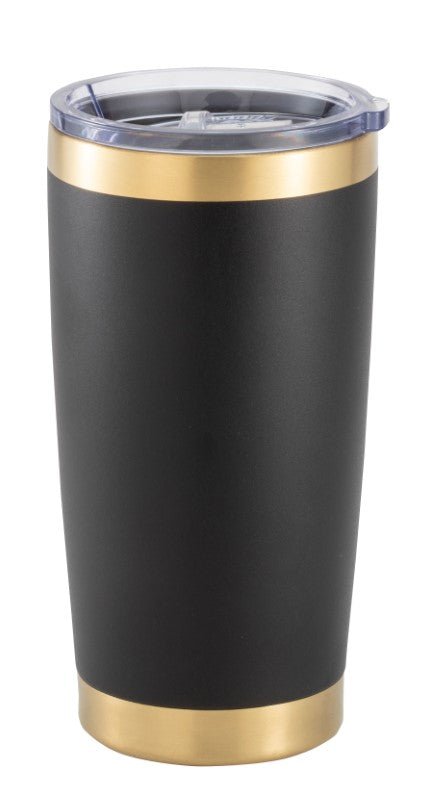 This 20 oz Tahoe tumbler with powder coated finish is part of our new Medallion Line, which are available in gold, silver and bronze. Stainless steel, double wall insulated for maximum heat and cold retention.