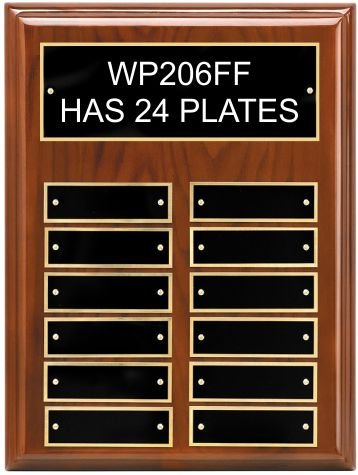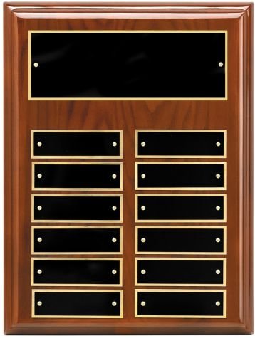 Walnut Piano Finish Perpetual Plaque with 12 black brass engraving plates. Individually Boxed