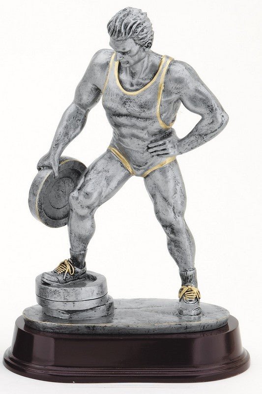 An Elegant Pewter And Gold Weight Lifter, Male Sport Award On Dark Finish Base With Room For An Engraving Plate