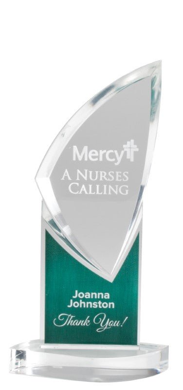 Elegant Acrylic Award Featuring Two Locations for Engraving, Allowing a Larger Surface for a Logo and Body of Text.
